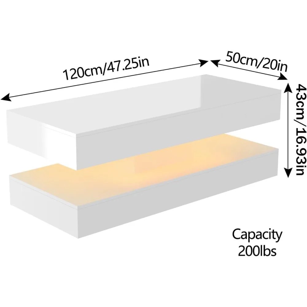The built-in APP-controlled RGB LED lighting system allows you to customize colors and lighting effects directly from your smartphone, creating the perfect mood for relaxing, entertaining, or decorating. With a generous surface and ample storage space, this coffee table combines visual appeal with everyday practicality.