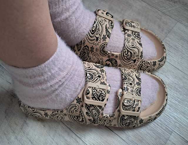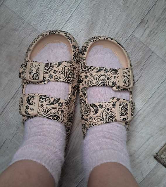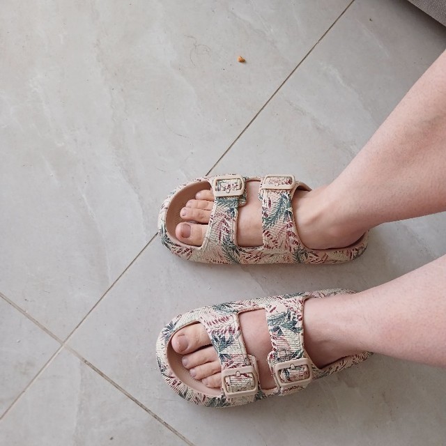 excellent slippers, soft, but not flims, straps are adjustable, suitable for both wide feet and narrow feet. Delivery is fast, everything is great!