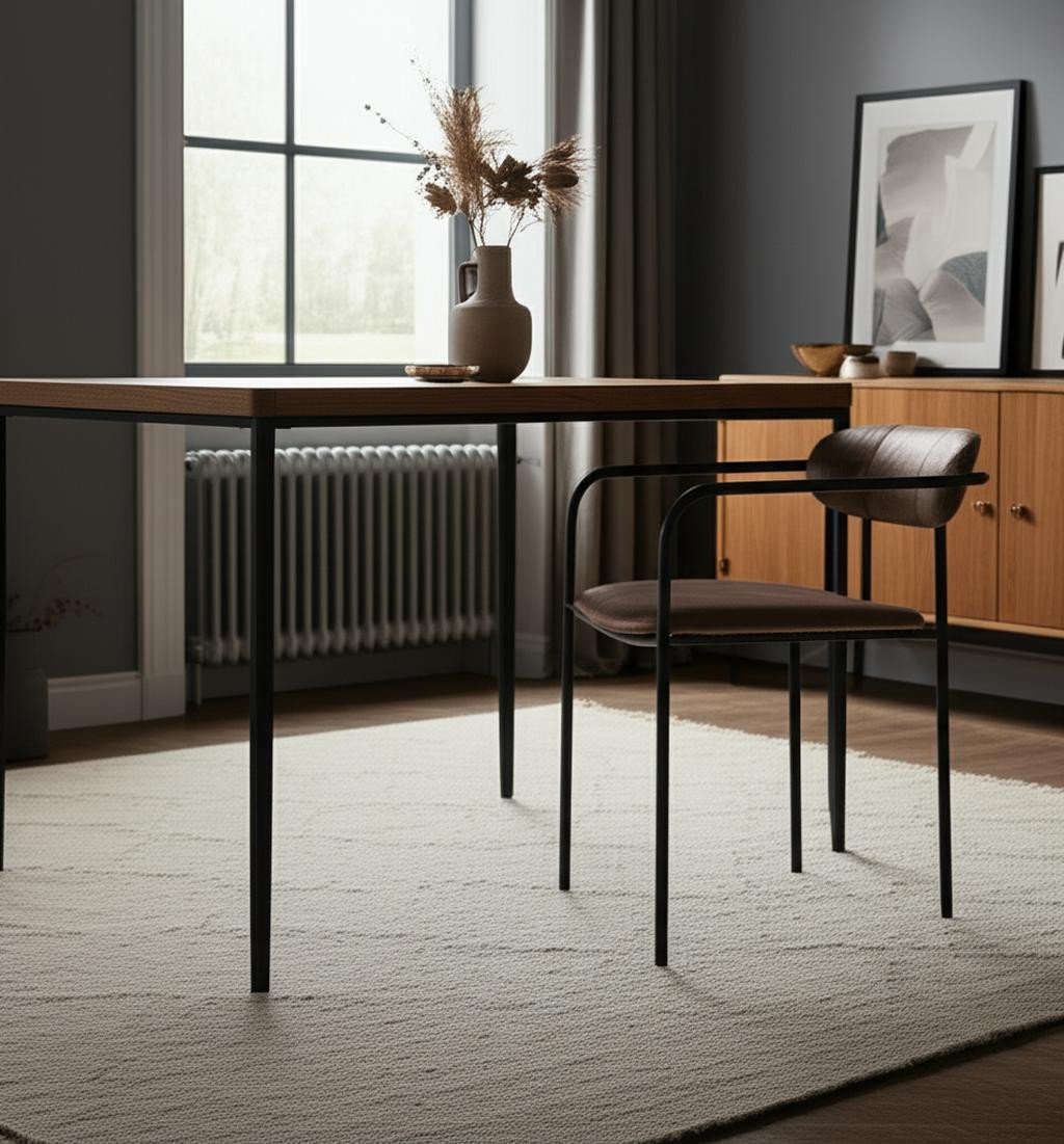 Brown and Black Faux Leather And Metal Open Back Dining Arm Chair