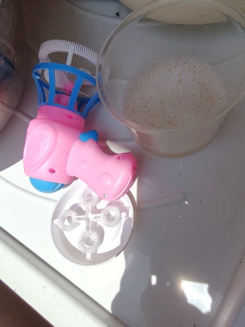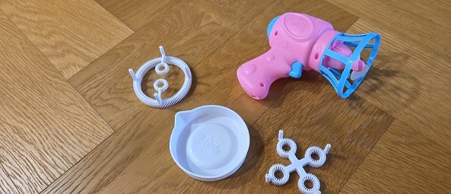 You need to blow in the direction the wind is blowing for the soap bubbles to form well. It’s good for children around kindergarten age to simply play with.