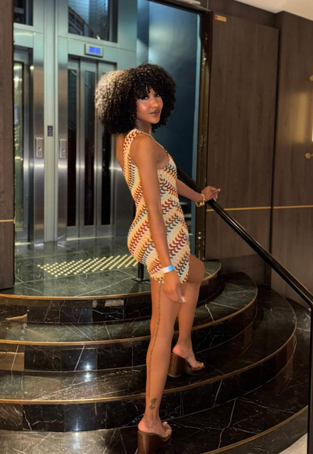 Very pretty but close to the buttocks, very close to the body so take a size up if you want to be a bit more comfortable.