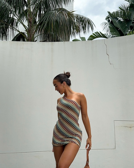 With its ankle-length cut, this dress offers a dramatic and elongating effect, perfect for summer holidays and beach outings.
