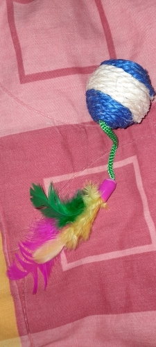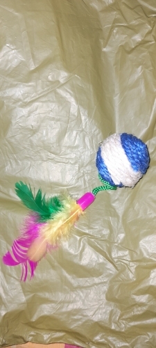 It is exactly as seen in the image. My cats really liked it because they can. order forcefully the ball without breaking it, and they love to catch the feathers. 10/10
