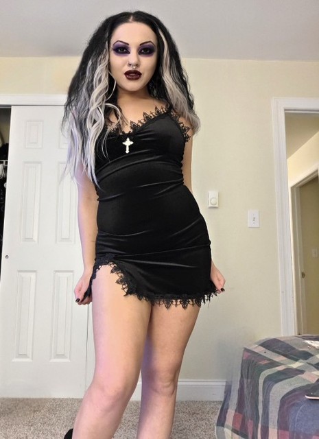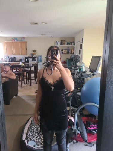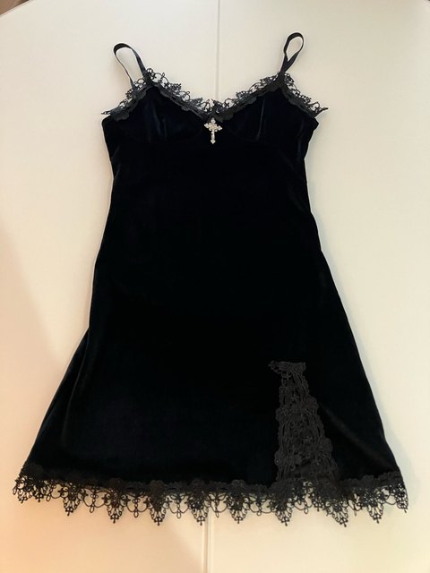 Very nice velvet slip dress/chemise. Has a large crucifix with jesus on it. Easily removed. Very nice fabric. May need to size up. Runs a little small.