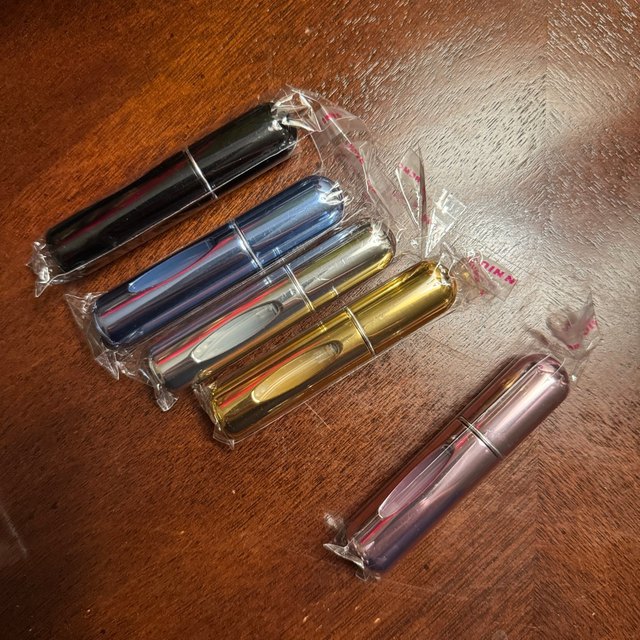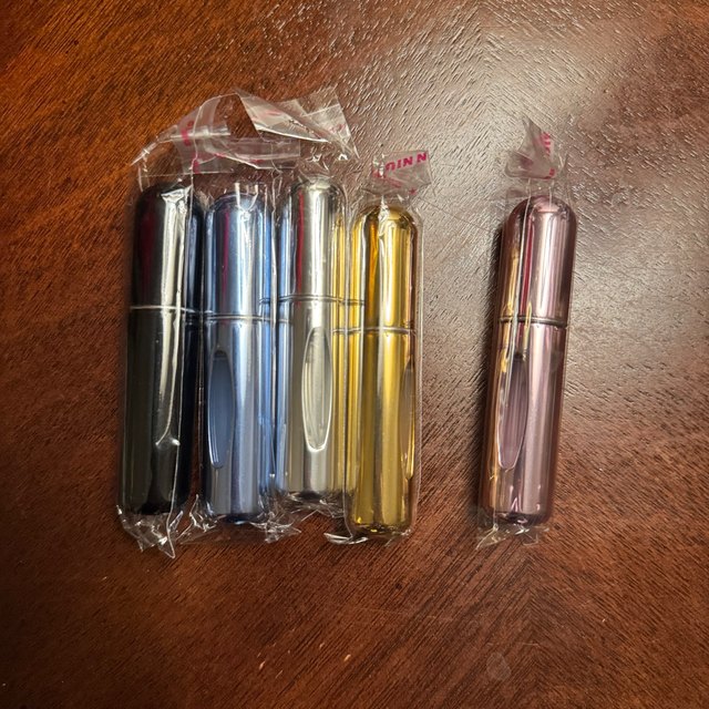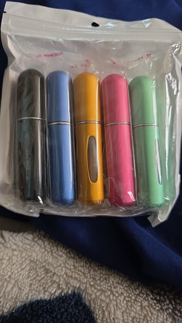 5 for the price of 2! What a bargain! They look just as pictured, came really fast! Now i can take a scent for daytime and one for after work, with all the clutter of large bottles. They’ve it easily in side pockets of my purse or even in the 5th pocket of my jeans!!! Will definitely be ordering more, in the near future.