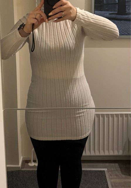 Super cute, very stretchy, but kinda shows a bit of butt when i bend down which is easy to fix with some shorts and stockings! A tiny bit see through, through the stripes but can wear something underneath. Quite warm to wear.