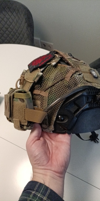 It fits on my fast helmet and on my helmet cover, and looks good doing it, the velcro loops on the bottom holds a chemlight nice and tight, it has velcro for my patches and holds my battery in the battery pouch, delivered decently quick and i am not disappointed, thank you