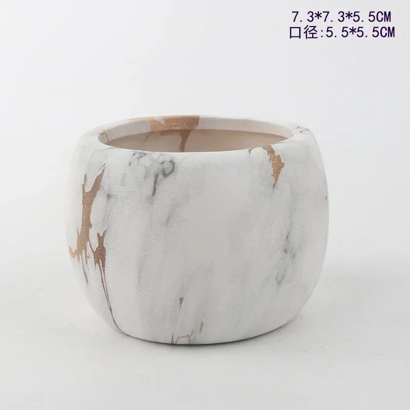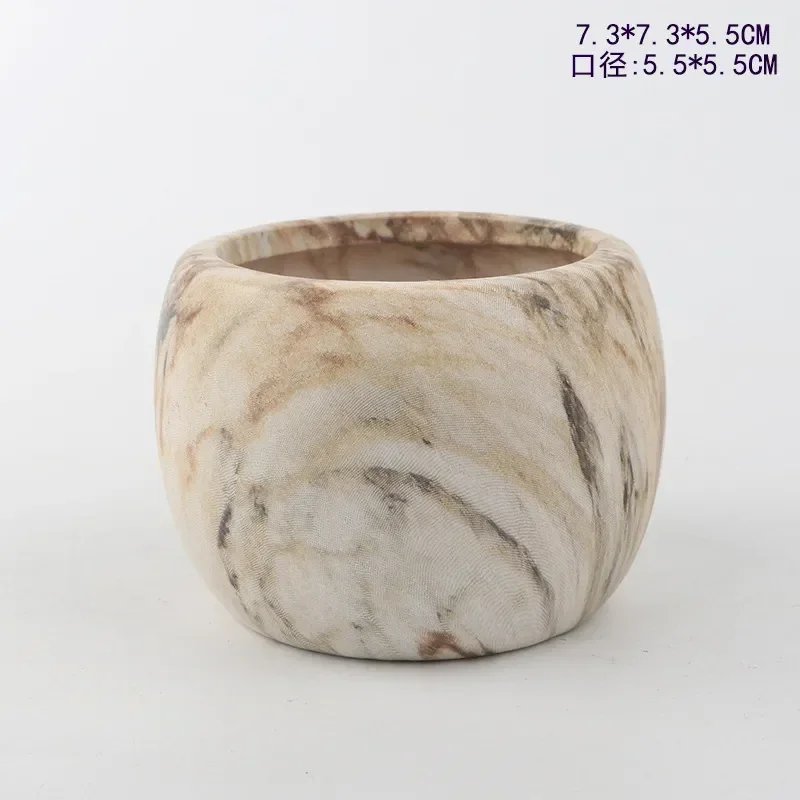 Add a touch of Nordic Ceramic Succulent Planter to your space with these creative ceramic succulent pots. Featuring a smooth rounded shape with realistic wood-grain and marble-style water transfer finishes, these planters blend modern design with natural textures.