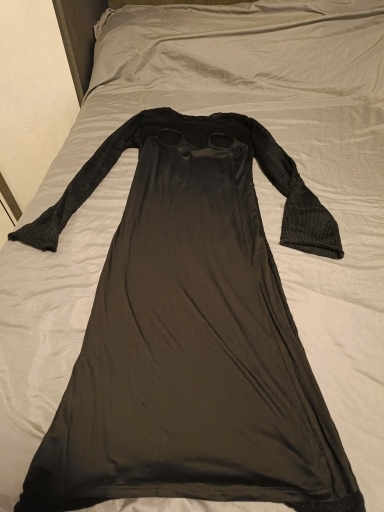 Design: O-neck, long sleeves (optional – you can specify), ankle-length