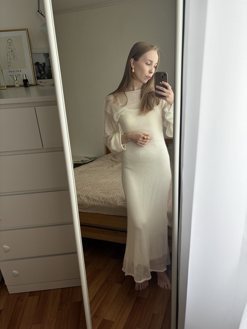 Perfectly fits a pregnant belly. The quality is superb, the color is pleasant. The thread stretched a little on the glove and may continue to spread, causing a hole. You need to be careful and sew it in time. Soft, delicate material.
