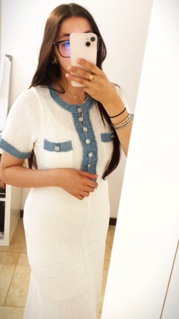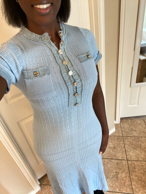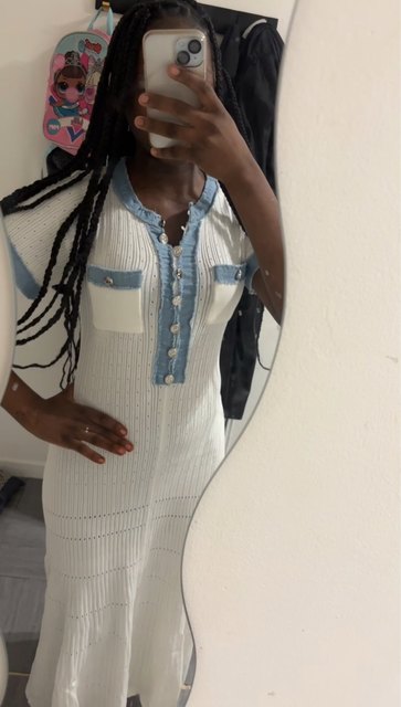 The dress arrived very quickly. 😍 She is incredibly slightly transparent but a short underneath will do the trick! ! It’s an identical copy of Sandro’s.