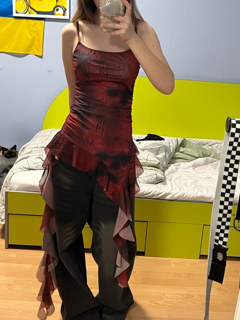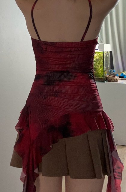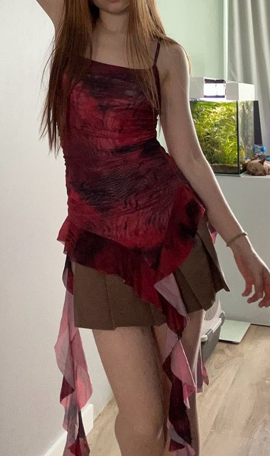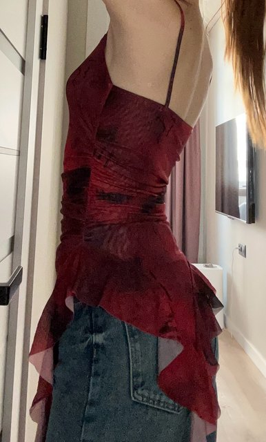 Well, what can I say. I ordered S (since there are no lower sizes) for my XXS / XS. The most important thing is that the waist and hips fit normally, you won’t have to sew it. The fabric is normal, stretches, and is comfortable to wear. The top is slightly visible, but not so much that it can be considered a problem. The fabric cut on the side is very long, almost to the floor, but that suits me. Of the disadvantages, you can see the bra at the back, the top is shorter, and the straps are also very long, they will probably have to be sewn on.