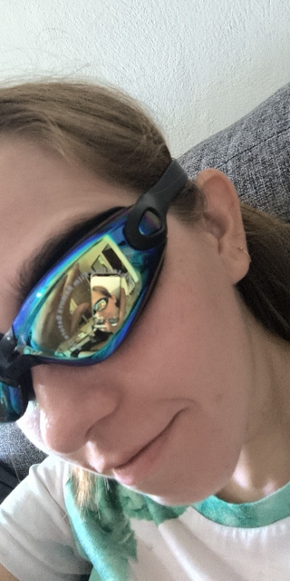Good swimming goggles. They have sun protection.