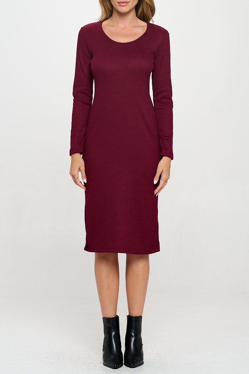 Step into the season with timeless elegance. The Ribbed Side-Slit Midi Dress is crafted in a rich rib-knit texture, offering both warmth and breathability perfect for crisp autumn days. The flattering body-skimming fit, classic round neckline, and chic side slit make it a versatile piece for layering under jackets, pairing with boots, or dressing up with heels for an evening look.