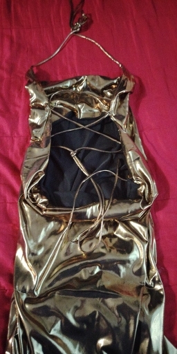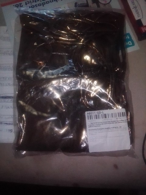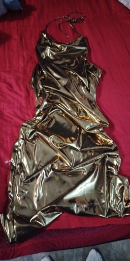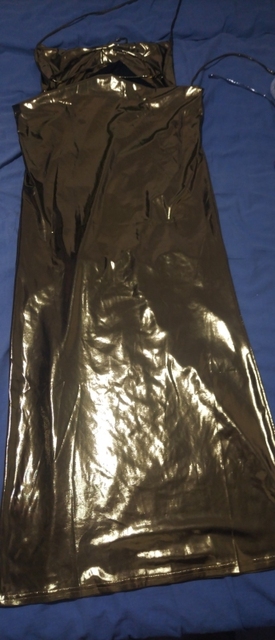 The dress is long, it’s tight, not transparent, and it’s very gold. It’s true to the image, it doesn’t have any details. I really liked it. You can trust that your package will arrive.