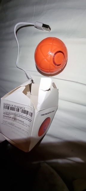 Box got wrecked but everything else is great, works well and dog loves it! Ball unscrews around the equator to recharge, little stiff the first time but some lube fixed it up