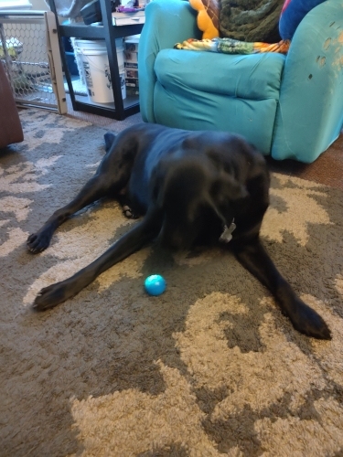 It’s like a large golf ball, it vibrates strongly and has the dog entertained for a long time.