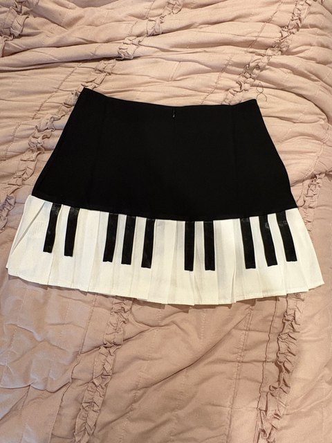 I’m absolutely in love with this piano skirt! The design is so clever and artistic — i’ve never seen anything like it before. The pleats give it a nice shape and it’s surprisingly easy to match with both casual and dressy tops