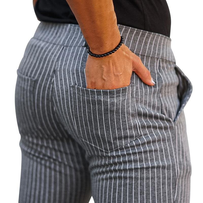 The striped design adds a touch of sophistication and uniqueness to the pants. It elevates your outfit from basic to fashion-forward, making these trousers stand out in any setting.
