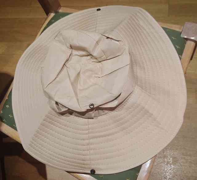 Hat with a wide brim received quickly and in good condition. The hat is delivered flattened and folded in half. Impossible to wear it immediately! It is all wrinkled, it doesn’t look like anything. I don’t even know how to iron it out… On the ironing board? At what temperature? I am very disappointed with what I received… I do not recommend it, unless you know how to restore a normal shape to this hat.