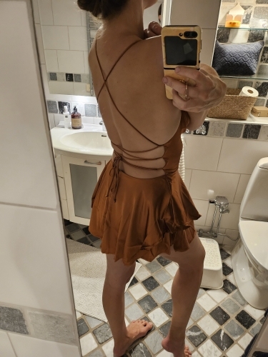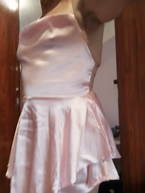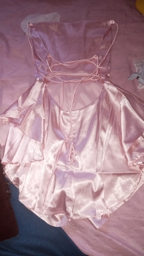 Not a bad dress, quality matches the price, a few loose threads, thin material but acceptable for this money. Quite revealing, so you need overlays instead of a bra to keep everything neat (if you want). Beautifully shines in the light. (I also slightly gathered in the middle with regular thread to make it lie nicely in the neckline area)
