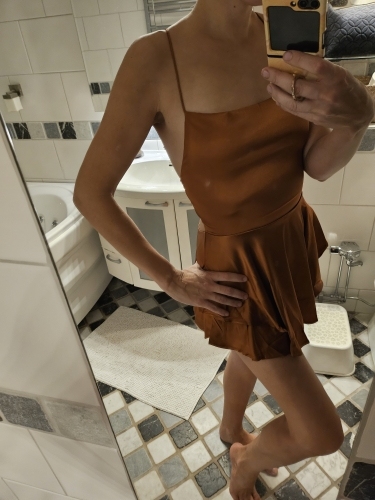 The dress is cool, light, and cute. I plan to buy another one in a different color later. Delivery took 2 weeks, which is good. 👍🏻 👍🏻 👍🏻 I added three loops on each side at the top to prevent bunching, and overall the dress is a rocket of fluff, I recommend it.