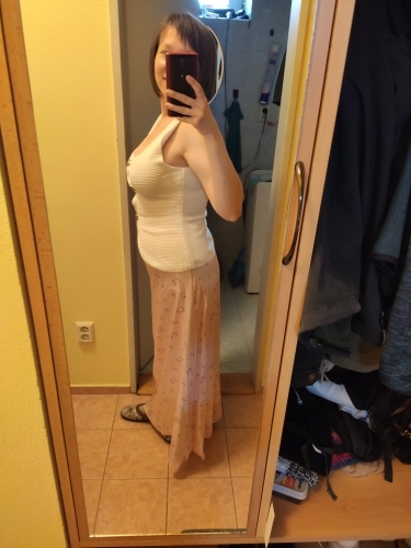 The skirt is wonderful. Beautiful. Doesn’t shine through. The waist fits my XS perfectly. For a height of 164 cm, it came very long. I had to shorten it.