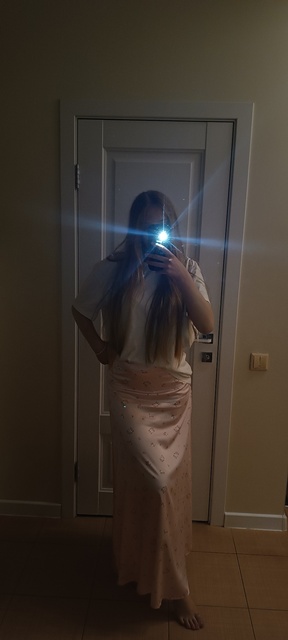 cool skirt The fabric is pleasant, satin. The color is as in the picture, the design is beautiful. – Length for height 173 cm below the ankles Disadvantages: I ordered a size M skirt for my size S. It turned out to be too big for me, especially at the waist. And for me, it’s too fluffy; I would like a more straight model. •arrived with one slight delay, but the fabric is very delicate, so this can happen! Thank you to the seller, good sales and prosperity. 💛 ☀️