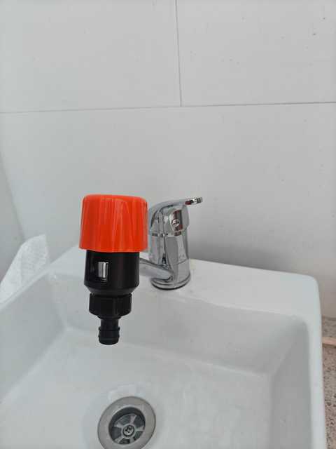 Excellent patent for connecting any kitchen faucet. I don’t have a hose in the balcony so this is an excellent solution. The sticky is really strong and does not hurt the faucet. Very recommended.