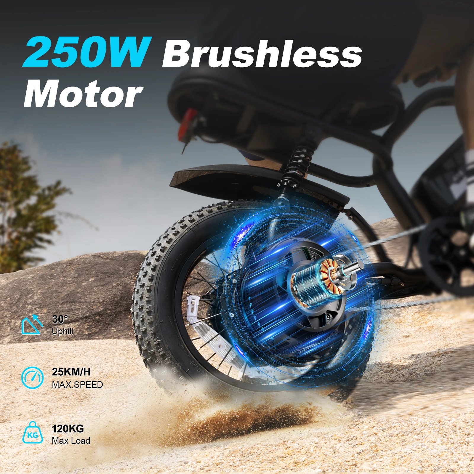 Conquer any terrain with the VDL 16″ Fat Tire Mountain E-Bike, engineered for both power and comfort. This all-terrain e-bike combines a sturdy frame, wider seat, and heavy-duty rear rack, making it the perfect choice for daily commutes, weekend adventures, or rugged mountain rides.