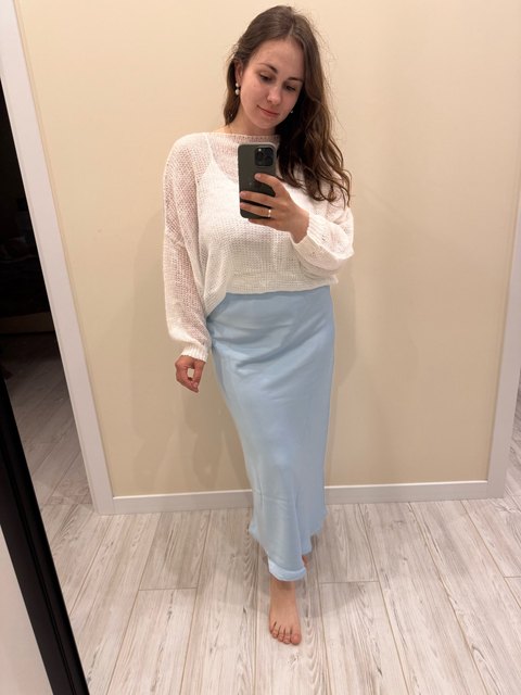 Gorgeous skirt, thick satin, good cut. I’m very pleased, the skirt is even better than Zara) I’m delighted with the purchase, I want other colors, I definitely recommend it!