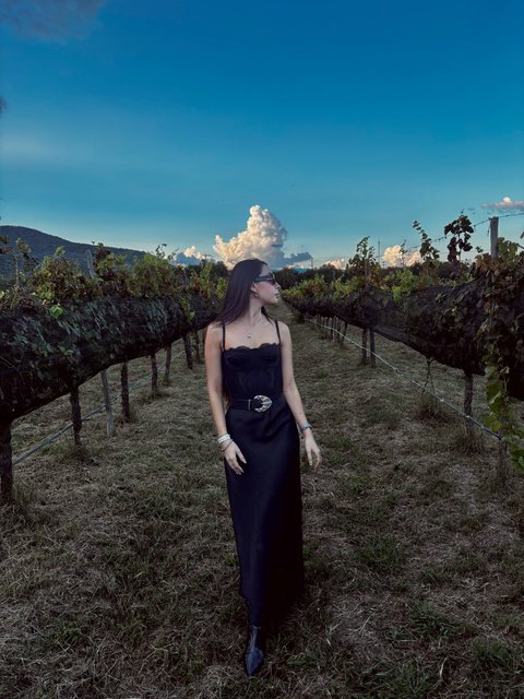 With its vintage-inspired silhouette and soft, flowing texture, the evokes a classic, feminine aesthetic. The midi length elongates the frame, while the satiny sheen adds a luxurious touch. It’s the kind of piece that makes a subtle yet striking statement, offering both sophistication and comfort in one.
