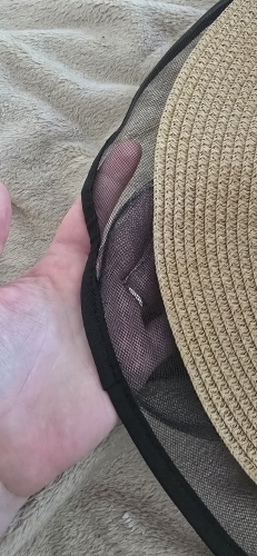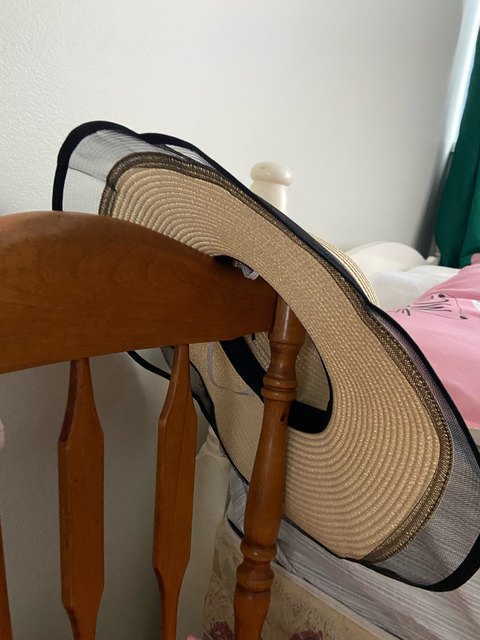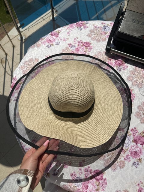 The hat came folded so it would take some time to get a nice shape. Otherwise everything is okay, it has elastic to hold on so it would not fly away by wind