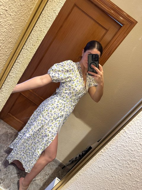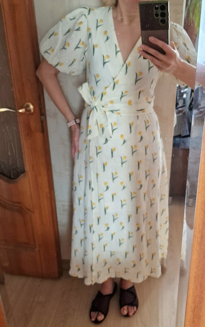 The dress is very high quality and beautiful. 100% cotton, there is a lining that is excellent and does not see through the linen. For height 164, I ordered M – it fit well, but you could take S. There is no button, it smells up.