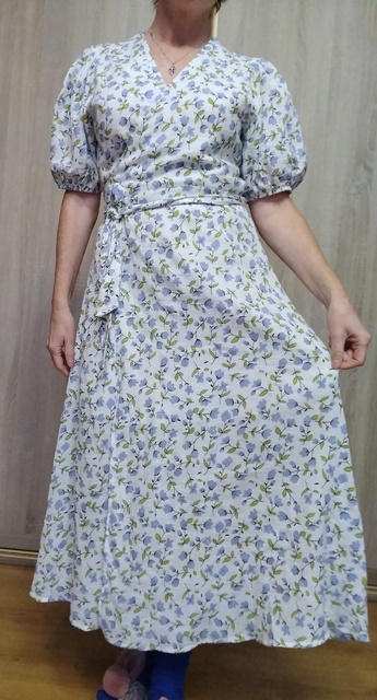 A good muslin dress with lining for 48RR XL is excellent. It doesn’t show through. In strong wind, it flies up to the level of panties; a button would be needed)) I recommend it. It’s not hot even in the heat, and if it’s slightly cooler, it’s also good))