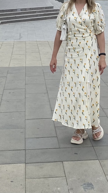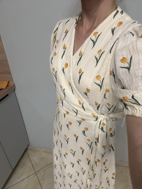 The dress is simply amazing! muslin fabric or similar, very light, pleasant to the touch and not hot to wear. lining somewhere around the middle length. buttercream color – delicate. For OG 89, OT 66, OB 99, I chose size L, it fits me perfectly. Length to knee for height 161cm