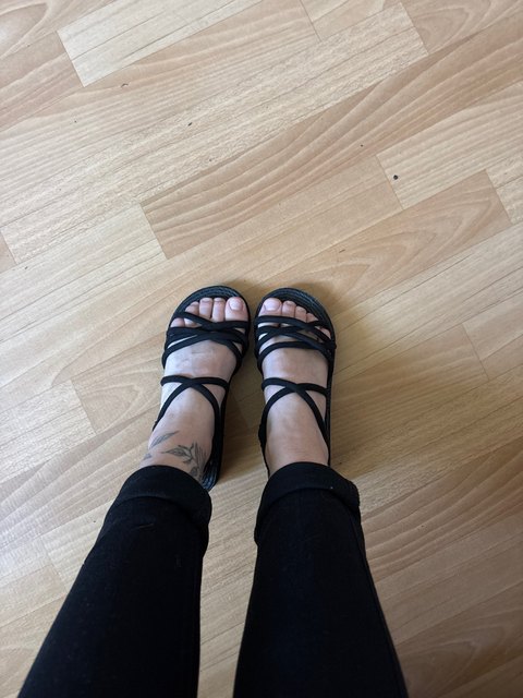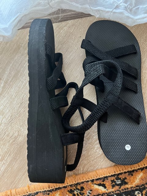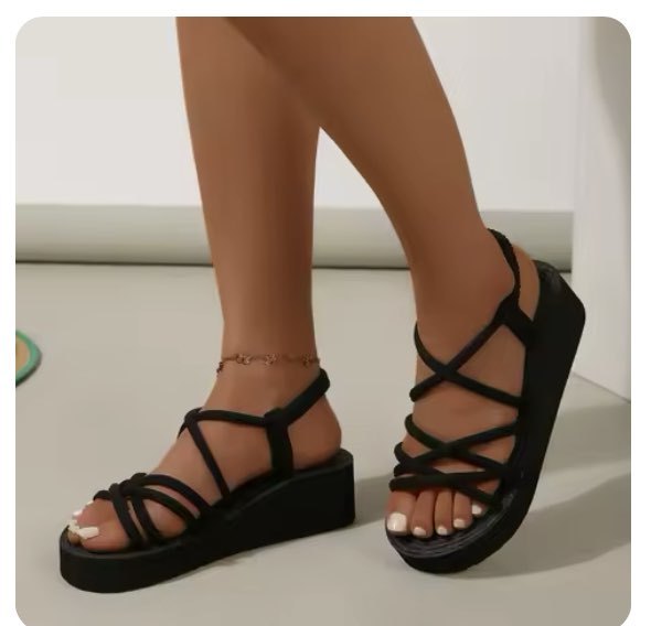 Lightweight, soft, the first time wearing all these laces is difficult, but after that it keeps its shape and doesn’t cause any problems, the straps are elastic. The sandals are comfortable.
