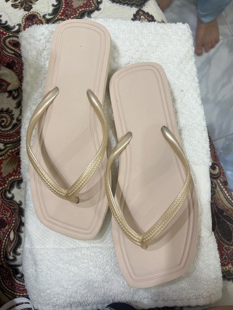Everything is as stated. Regular flip-flops, quality is not bad. The size runs small. I took size 40-41 for 39 and still the heel hangs slightly.